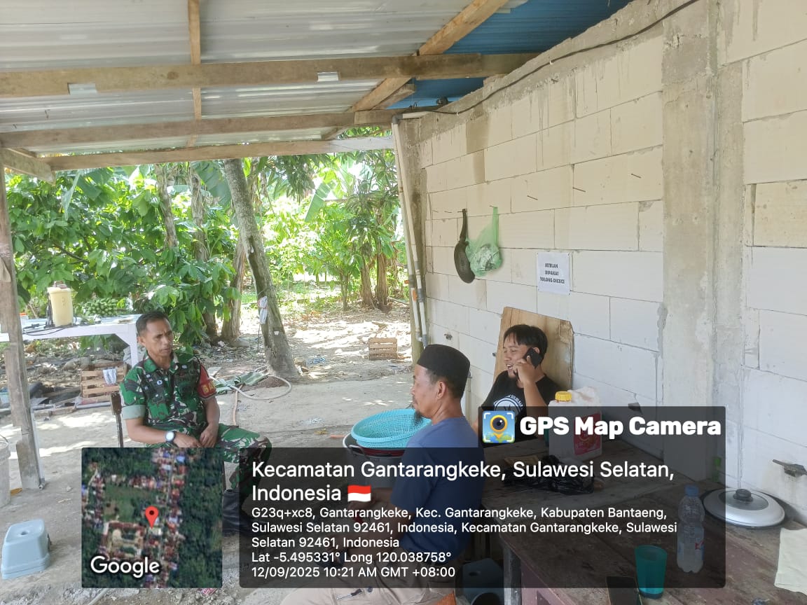 Bantaeng – Babinsa Kelurahan Gantarangkeke, Koramil 1410-03/Tompobulu, Serda Arifuddin melaksanakan kegiatan Komunikasi Sosial (Komsos) bersama tokoh masyarakat, tokoh agama, tokoh adat, dan tokoh pemuda Kegiatan ini berlangsung di Kelurahan Gantarangkeke, Kecamatan Gantarangkeke, Kabupaten Bantaeng. Jumat (12/9/2025).