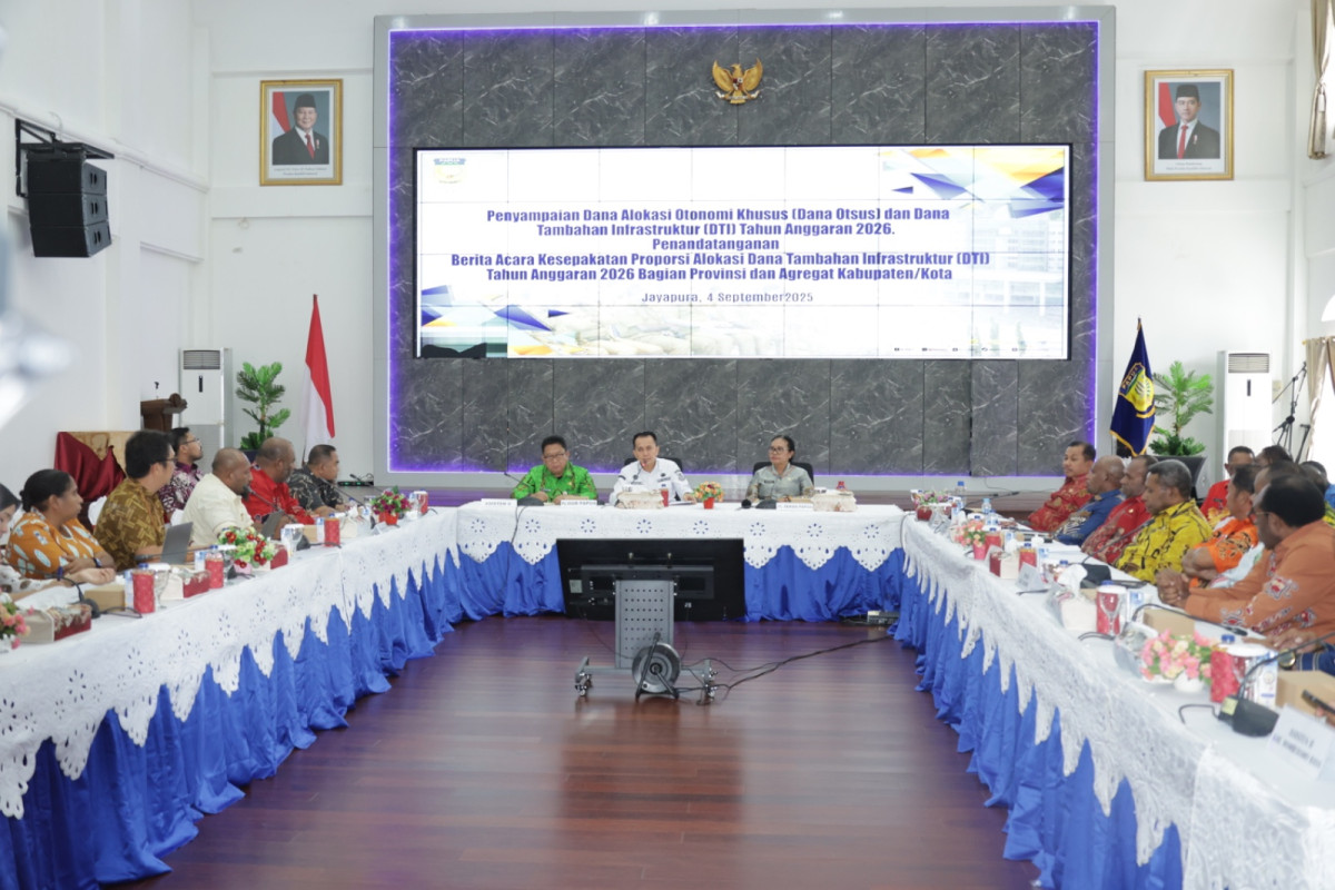 Jayapura. Pemerintah Provinsi (Pemprov) Papua bersama Bupati dan Wali Kota se-Papua resmi menandatangani nota kesepakatan proporsi alokasi Dana Otonomi Khusus (Otsus dan Dana Tambahan Infrastruktur (DTI) Tahun Anggaran 2026. Kegiatan ini berlangsung di Lukmen Hall, Gedung Negara, Jayapura, Papua, Kamis (04/09/2025).